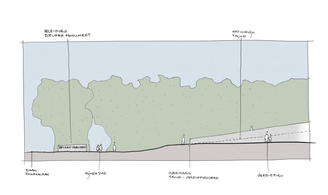 Met onze ingreep proberen we het verhaal over het ontstaan van het Belgenmonument voor een breed publiek aansprekend en inzichtelijk te maken. Tevens proberen we het door middel van ruimtelijke beleving te verbinden aan de hedendaagse vluchtelingenproblematiek.